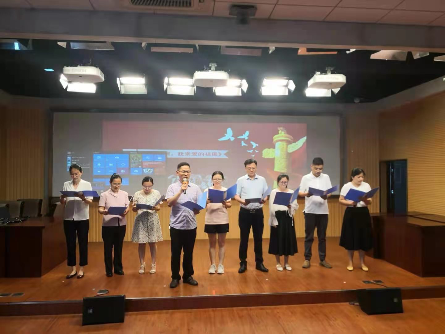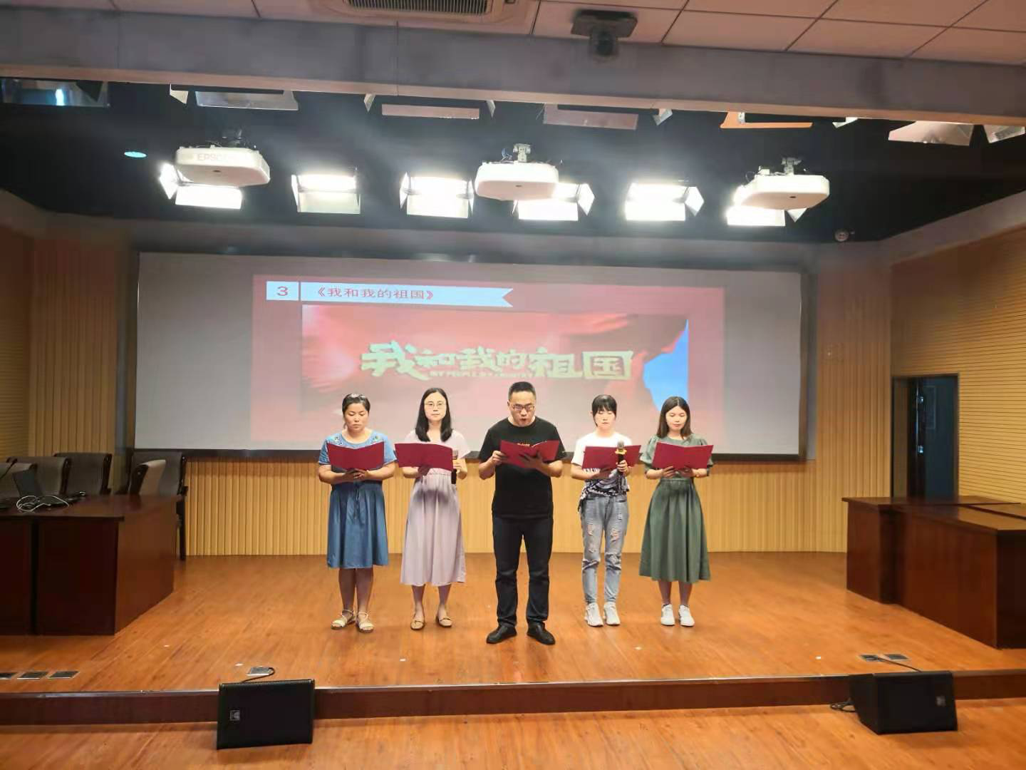 在诗歌朗诵会上,公司7个教研室经过前期加班加点、紧张排练,给广大教职工献上了丰富多彩、特色各异的红色经典朗诵曲目。伴随着《没有共产党就没有新中国》《青春》《我和我的祖国》《祖国啊 我亲爱的祖国》《红船颂歌》《颂歌给党听》《沁园春· 雪》《有一页历史》《一百年风雨兼程》 等红色经典的精彩表演,不仅让一段段尘封的历史鲜活了起来,而且深情歌颂了中华民族恢宏壮丽的历史篇章,激发台下观众的阵阵热烈掌声。
