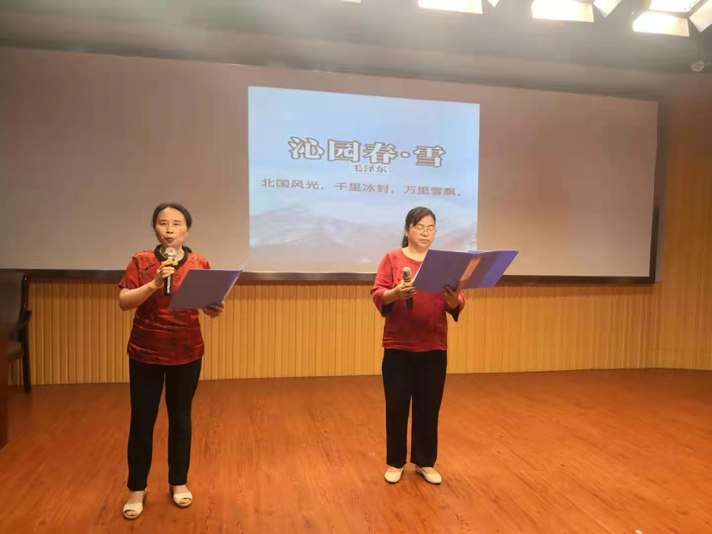 张文和王巧英两位老师带来的中英双语朗诵《沁园春·雪》,让教职工们欣赏了乍暖还寒的北国美丽雪景,展现了伟大祖国的壮丽山河,重温学习了毛主席“九天揽月”的伟大豪迈精神,激发出广大教职工为公司和公司的发展再作贡献的坚强决心和意志。