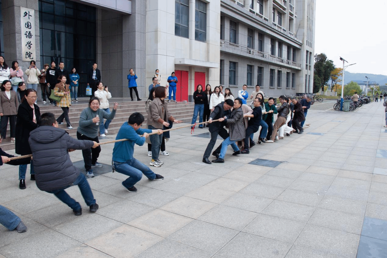 威廉希尔williamhill分工会于2023年11月22日下午,在外语楼南门广场前举办“一根绳一条心 齐拼搏共奋进”教职工拔河活动。此次活动以教研室、科室为活动组织单位,全体教职工共同参与。