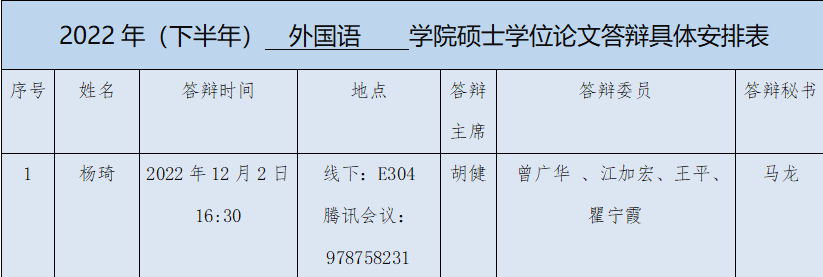 2022年(下半年)威廉希尔williamhill硕士学位论文答辩具体安排表