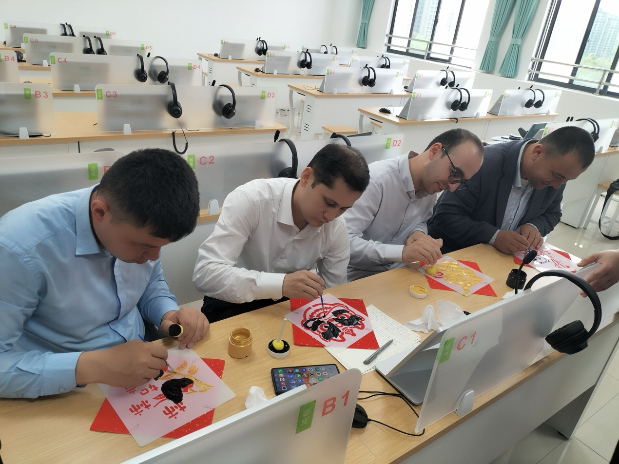 代表团应邀参加公司2025年外语文化节,观看剪纸、扎染作品等非物质文化遗产,感受中华文化魅力。