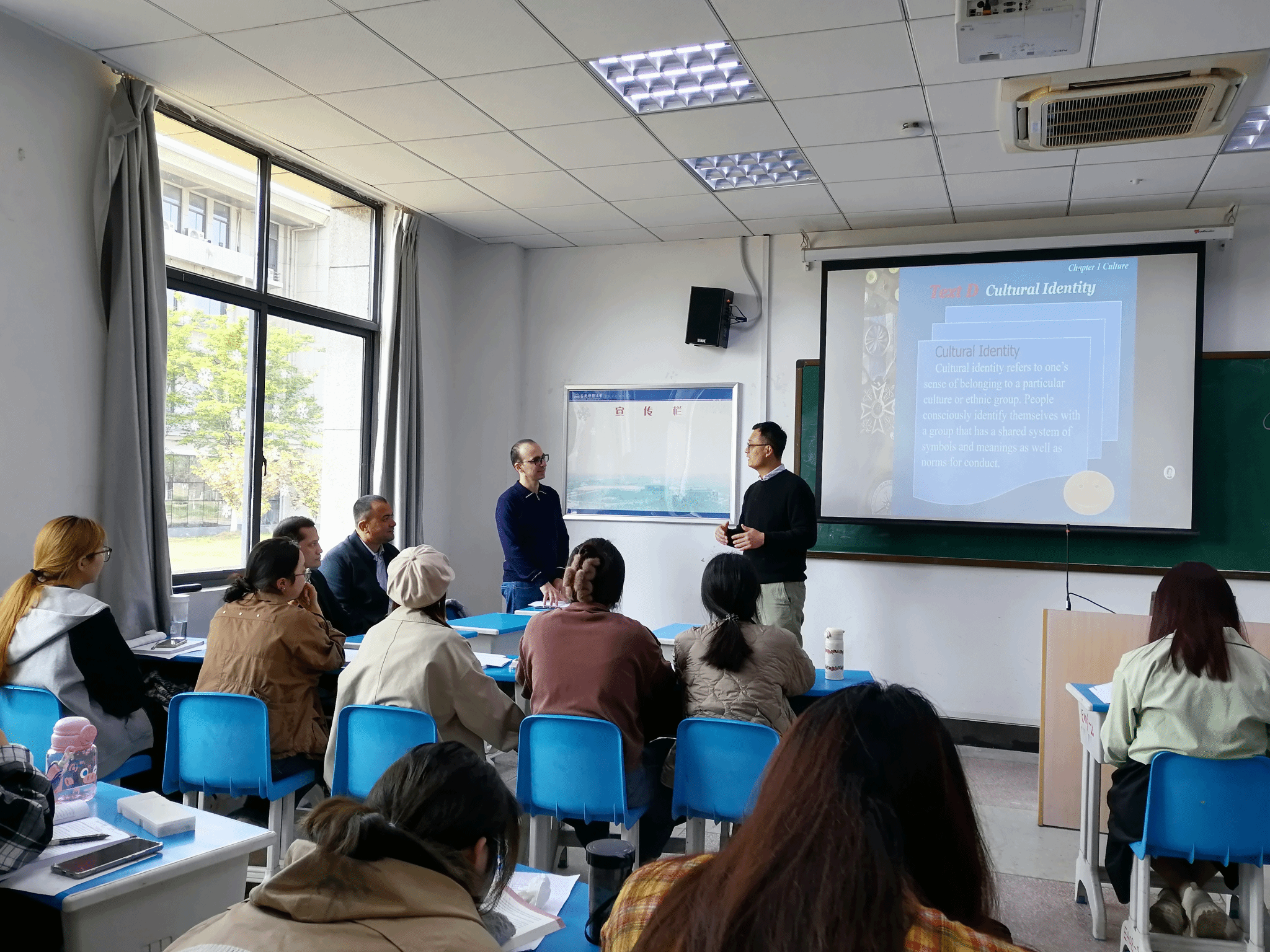 访问教师深入课堂,观摩“跨文化交际”“基础英语”“英语阅读”等课程教学,沉浸式体验创新教学,亲身参与课堂讨论等互动式教学。代表团对公司“翻转课堂”教学模式表示高度赞扬,并就“活动设计”“平台使用”等与授课教师展开探讨。