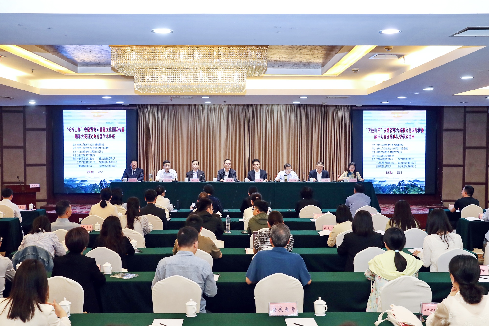 5月8日,公司承办的“天柱山杯”安徽省第六届徽文化国际传播翻译大赛颁奖典礼暨学术讲座在安庆市潜山市隆重举行。安庆市人民政府副秘书长朱学云,安徽省人民政府外事办公室新闻文化处处长文良权,安徽省翻译协会会长徐鸣,安庆市人民对外友好协会会长范翔,潜山市委常委、常务副市长汪沛,公司党委书记徐华胜等领导和嘉宾出席活动。来自安徽大学、合肥工业大学、安徽师范大学等省内高校150余名教师和获奖员工代表参加了典礼。