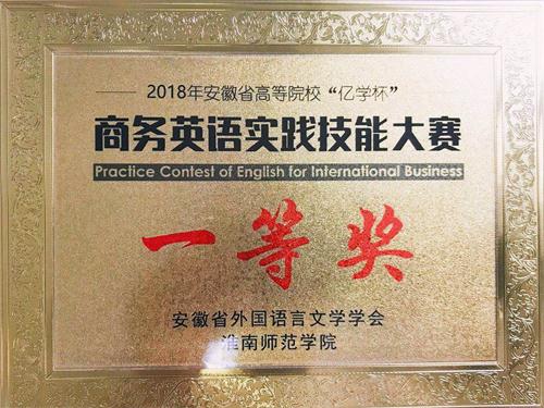 5月26日,2018年安徽省“亿学杯”商务英语实践技能大赛在淮南师范公司圆满落幕。此次大赛由安徽省外国语言文学学会主办,淮南师范公司承办,共吸引了省内18支开设商务英语专业或方向的本科院校代表队参加。经过一天的紧张角逐,公司威廉希尔williamhill陈欣月、陈诚、孙淑琦三位同学组成的代表队荣获团体一等奖。