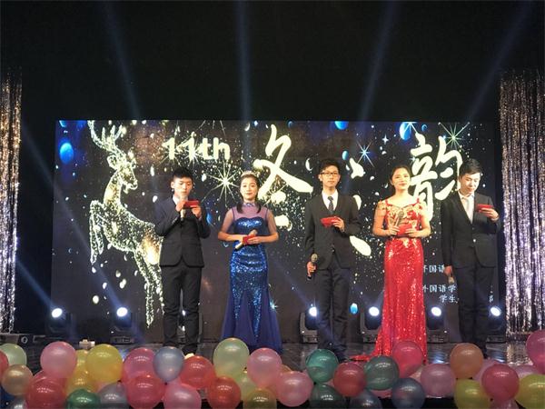 在公司舞蹈团热情奔放的开场舞渲染下,冬之韵晚会拉开了序幕。整场晚会分为Chinese Elegance、Western Grace、Future Pace三个篇章,节目形式多样,精彩纷呈。美奂美仑民族舞蹈《茉莉花开》《索玛花开》、急管繁弦的乐器演奏《卡农》尽显外院学子多才多艺的风采,多语种的主持风格、深情演绎的英文话剧《冰雪奇缘》彰显外院博采众长、共语辉煌的独特文化风格,穿越时空的文化展示《梦回古今中外》、动听的中外歌曲串烧抒发了外院学子坚持文化自信和以“各美其美,美人之美,美美与共,天下大同”推动文化传承创新的使命情怀,声情并茂的朗诵《青春献礼十九大》更展示了外院学子学思践悟十九大、同心共筑中国梦的使命担当。