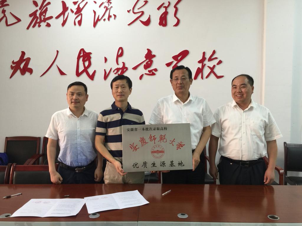 根据公司招生工作安排,近日,威廉希尔williamhill副经理王先荣、副书记夏斐一行四人,赴安徽省蚌埠市、固镇县、怀远县、滁州市凤阳县等地省(市)示范高中进行招生宣传,并开展优质生源基地合作协议签订及挂牌工作。