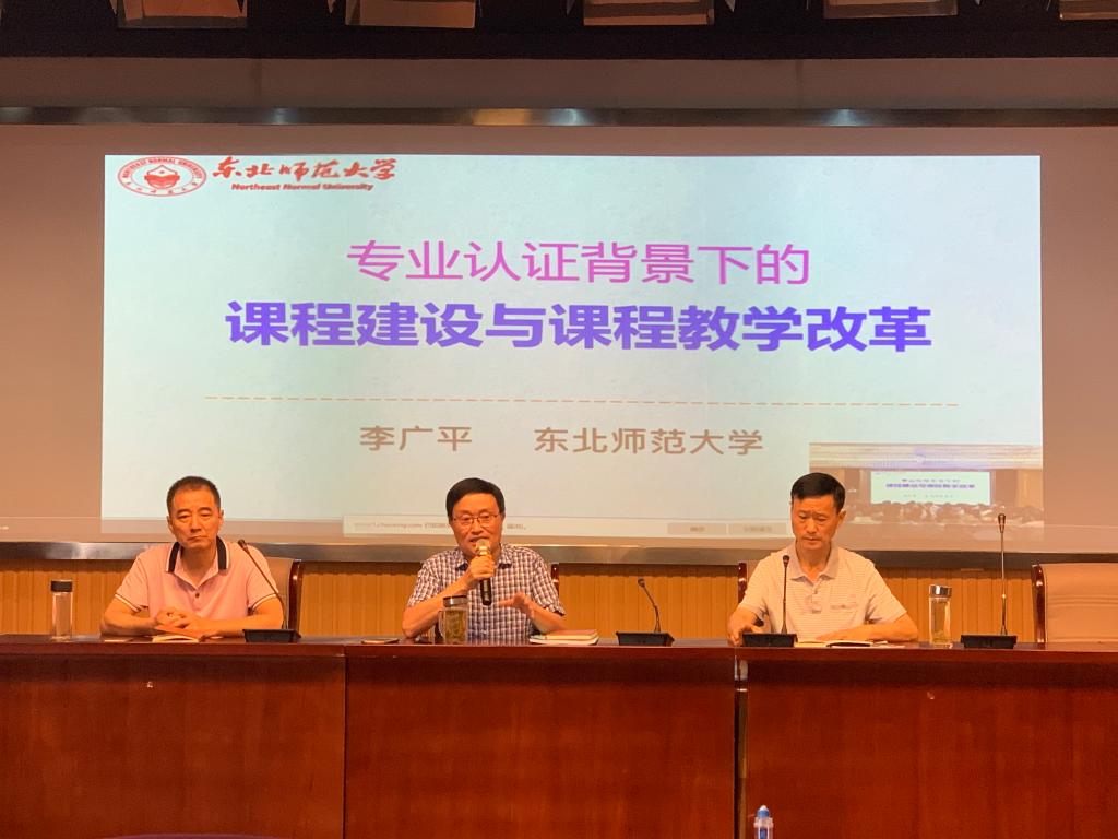 宋冬生教授以“把准毕业要求内涵、统领认证主线与底线”为题对师范类专业认证的指导思想、认证理念、认证原则和认证指标体系等进行了详细的解读。李广平教授以“专业认证背景下的课程建设与课程教学改革”为题,就专业认证理念及如何构建师范生培养体系进行了深入讲解,通过实例阐述了围绕毕业要求构建持续改进的“产出导向”课程的教学实施路径和改革思路。