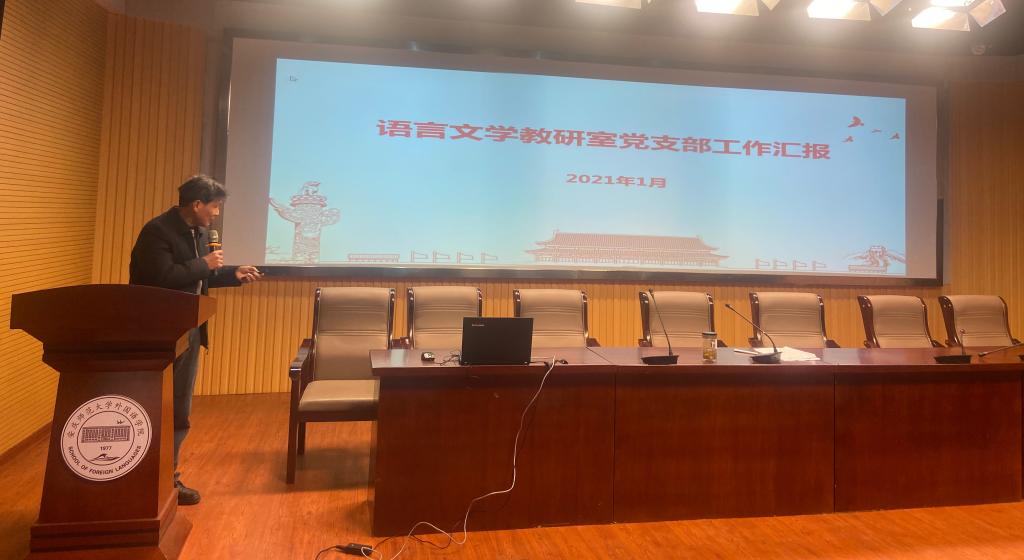 会上,10名党支部书记围绕一年工作、党支部七个有力标准建设以及特色品牌活动开展等情况逐一上台汇报展示,详细总结了各党支部一年以来以省级高校新时代党建设“双创”标杆院系党委建设为契机,充分发挥党员先锋作用,围绕公司中心工作推进事业发展所取得的各项成果。 2020年,各党支部攻艰克难,共同完成师范专业认证工作;翻译写作教研室党支部书记和商务英语员工党支部书记积极参与社区疫情防控服务,先进事迹被学习强国等媒体报道;公司五名员工党员获评校级疫情防控优秀志愿者;法语师生党支部员工刘童童获评安徽省“向上向善好青年”;公司“党建+创新创业”特色活动取得丰硕成果,员工项目在A类赛事中获得全国铜奖2项,安徽金奖3项。