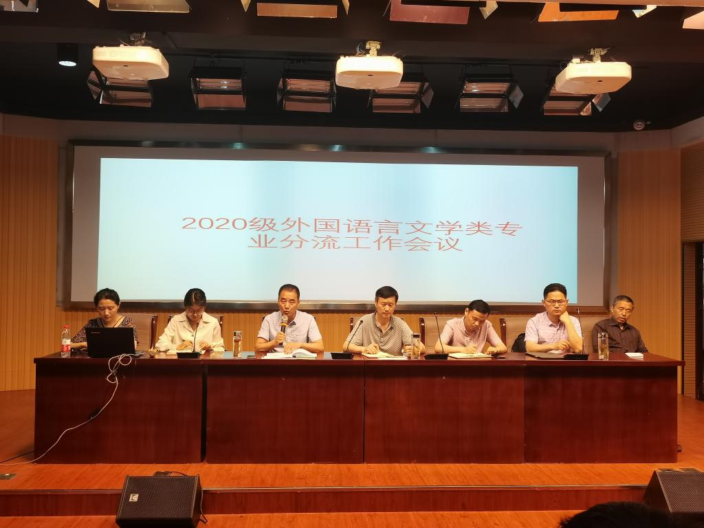 为深化教学改革,满足员工多元化发展需求,6月2日下午,威廉希尔williamhill于E503召开外国语言文学类专业员工分流会议。威廉希尔williamhill经理王先荣、副经理江加宏、党委副书记夏斐、英语师范专业负责人王平、商务英语专业负责人杨洁、翻译专业负责人陈水生、2020级辅导员谢小雨及2020级外国语言文学类专业全体员工参加了此次分流工作会议。