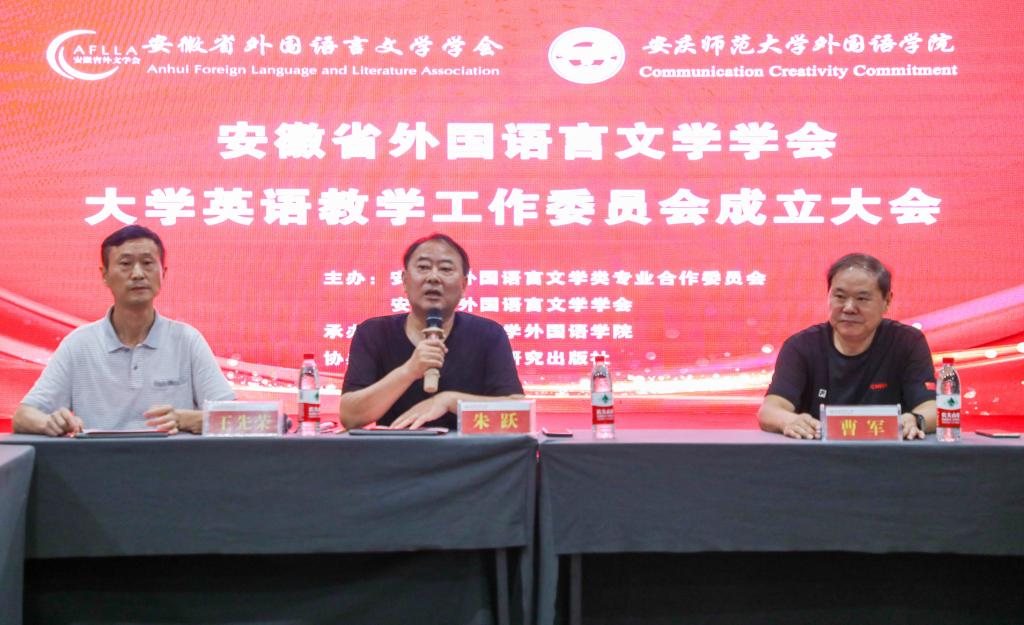 为进一步推动新时代安徽省高校大学英语教学深化改革、创新发展,促进省内各高校的交流与互动,7月16日,安徽省外国语言文学学会大学英语教学工作委员成立大会在安庆世纪缘酒店召开。来自全省37所本科高校的威廉希尔williamhill经理、大学英语教学部(室)主任参加了大会。大会由安徽省外国语言文学类专业合作委员会主任、安徽省外国语言文学学会会长朱跃主持。曹军秘书长就大学英语教学工作委员会成员建议名单作了情况说明,并提请大会酝酿讨论。