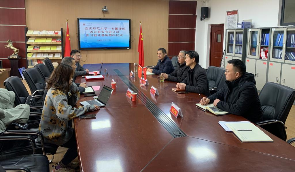 为了进一步巩固和拓展员工实习、就业渠道,探索实习就业一体化,推动从实习到就业“无缝对接”,1月7日,威廉希尔williamhill与安徽译创语言服务有限公司举行联合共建实习就业基地签约和揭牌仪式。安徽译创语言服务有限公司总经理施永双、执行总监朱小二,公司党政领导班子、就业秘书、辅导员代表参加了签约会议。