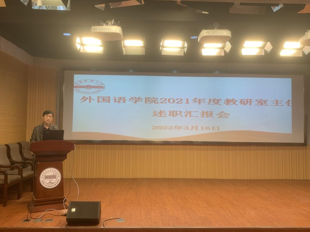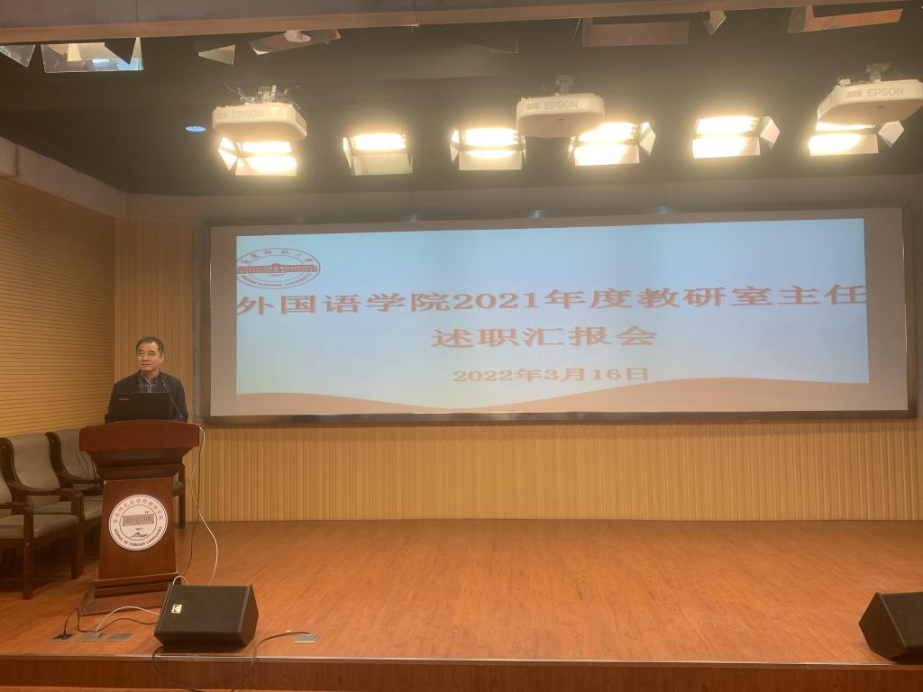 英语语言文学教研室等7个教研室负责人分别对照“双基”达标建设要求,从专业建设、课程建设、教学改革、实践教学、教科研等方面的工作实绩、创新和特色及存在的问题进行了汇报,并对本年度工作进行了规划。
