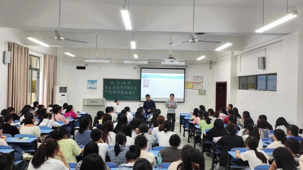 为了提升公司专业硕士点的影响力和辐射力,9月22日-23日,公司副经理黄全灿、硕士生导师代表陈水生、王平、研究生秘书马龙及在校研究生代表一行六人先后奔赴省内四所高校,开展线下招生宣传。宣讲会上,黄全灿全面介绍了公司教学特色、人才培养优势以及研究生招生政策、导师团队、科研成果、以及公司产品和奖助体系等,帮助考生更好地了解院情。学科硕士生导师王平及翻译硕士生导师陈水生分别介绍了公司两个硕士点的具体优势、特色,并与同学们进行了交流互动,鼓励广大同学做好考研规划,明确考研目标,扎实做好复习迎考工作。