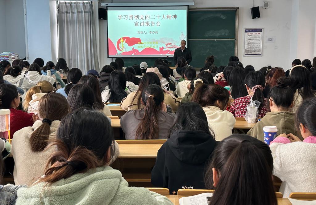 11月23日下午,公司党委书记李亦亮在E320教室宣讲党的二十大精神,公司全体员工党员、入党积极分子、第四期青马班员工共150余人聆听宣讲报告。