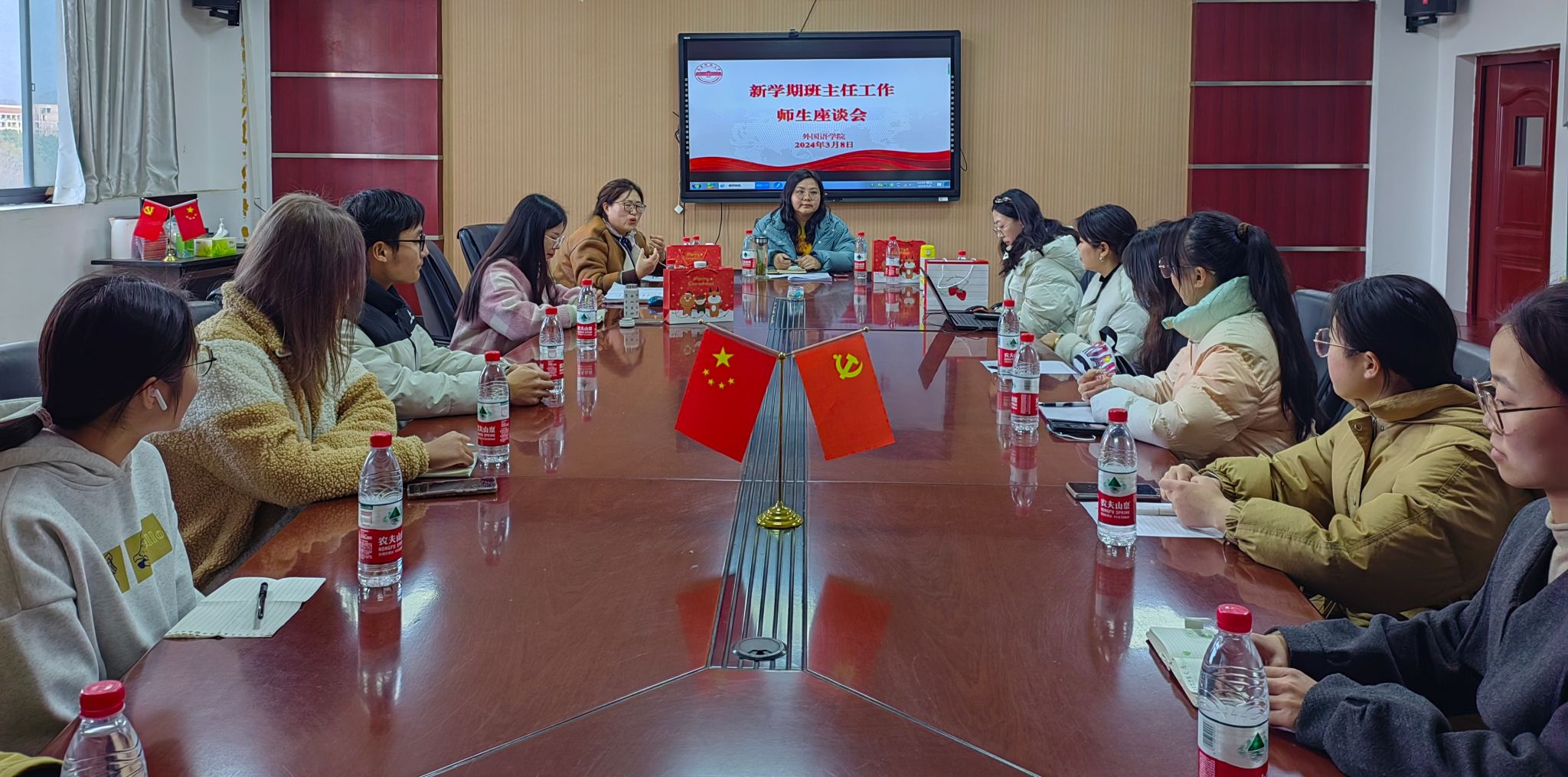 3月8日下午,威廉希尔williamhill于304会议室召开2023-2024学年第二学期班主任工作师生座谈会,公司党委副书记何媛君出席会议,2023级各班级班主任、辅导员和员工代表参加会议。