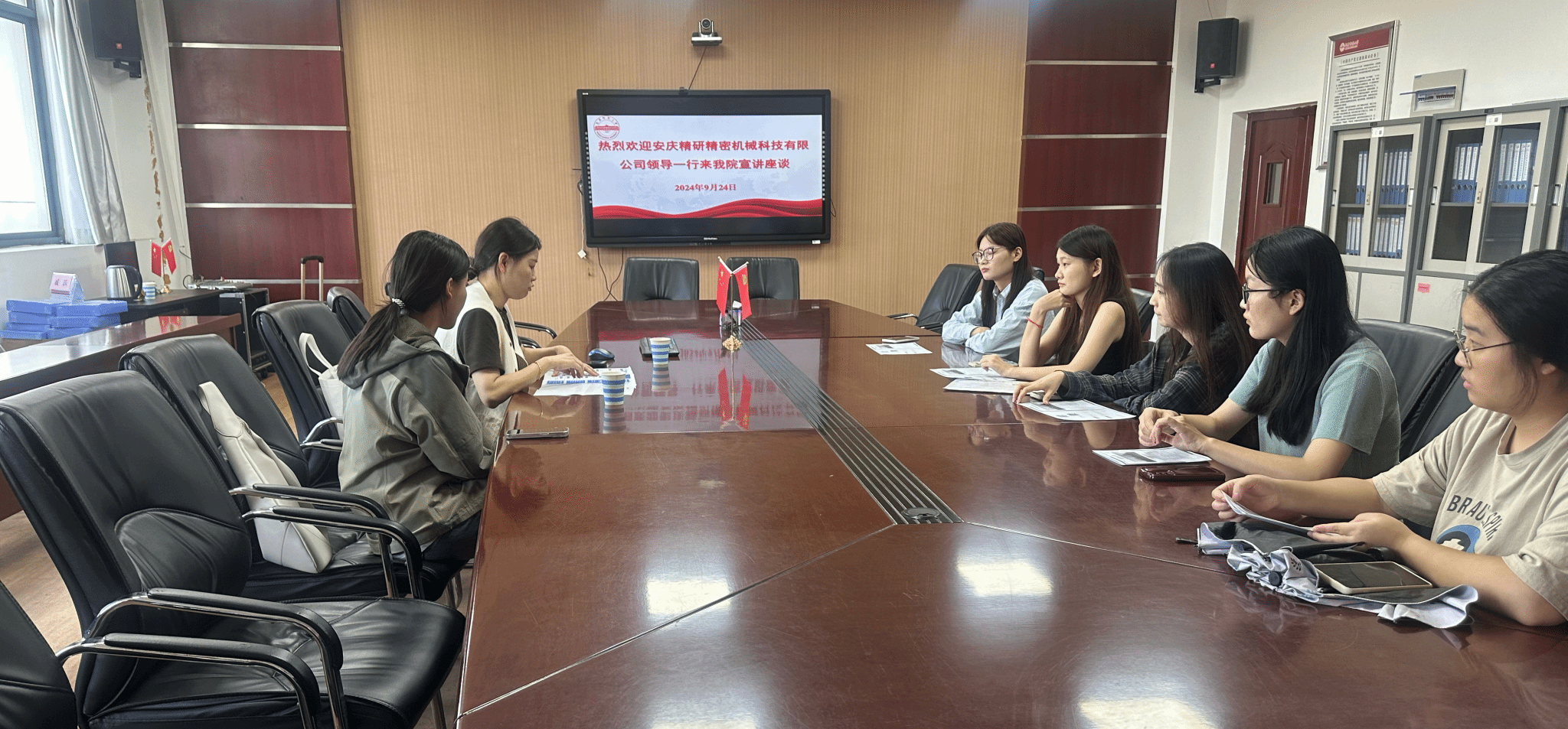 加强校企联系,扎实开展访企拓岗工作。9月23日,公司副经理江加宏带领毕业班辅导员一行前往安庆临港经济开发区访企拓岗,实地走访了安徽锦美星灿新材料有限公司和安庆精研精密机械科技有限公司等单位,江加宏一行对各企业发展历史、建设项目和人才培养需求等方面进行了解,双方就人才培养、实习合作、就业指导等方面开展交流。开学初,公司邀请新东方集团、宁波亚虎进出口有限公司、安庆精研精密机械科技有限公司等多家企业来院宣讲座谈,畅通毕业生就业渠道,为校企双方在公司产品、人才培养、“双创”教育等方面开展深度合作奠定良好基础,目前近30名2025届毕业生于宣讲企业达成就业意向。