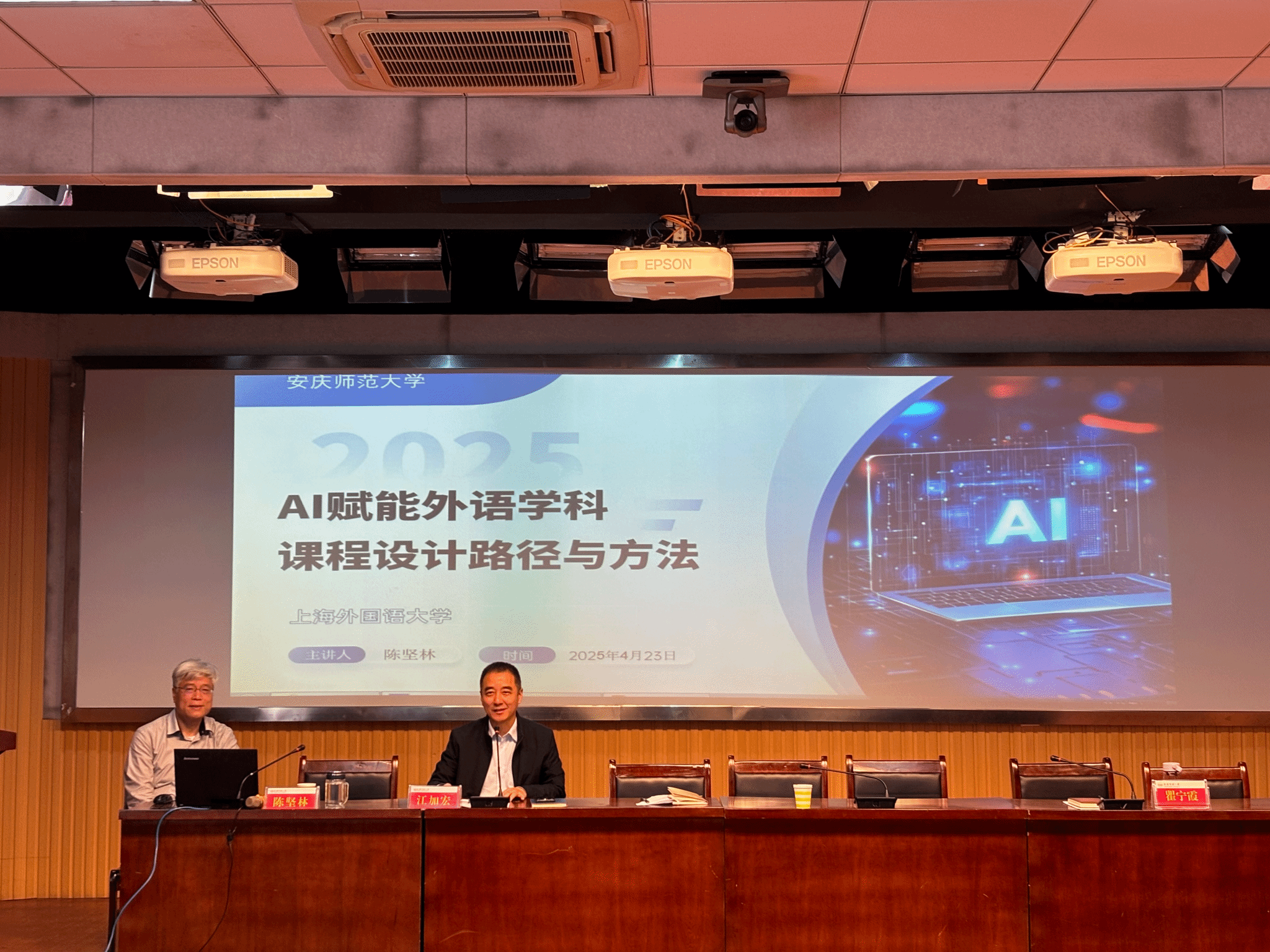 为深化课程教学改革,推进“AI+外语”课程培育工作,4月23日,上海外国语大学博士生导师陈坚林教授应邀到威廉希尔williamhill作题为《AI赋能外语学科课程设计路径与方法》的学术报告。公司全体教师与24级研究生参加了报告会。报告由经理江加宏主持。
