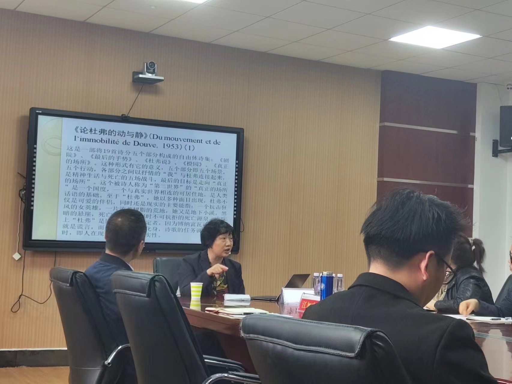 李教授基于自身对博纳富瓦的深入研究,聚焦其经典代表作品,分析“在场”、“不在场”的概念,指出“‘在场’是博纳富瓦诗学的核心”。李教授从“语言的沉默”、“形象的批判”、“时间和地点的结构”等角度,结合具体文本分析,阐述“以不在场来表达在场”和“诗学上主张在场和不在场的对立”的观点。最后,李教授期望通过博纳富瓦对诗歌本质“在场”的定义,呼吁同学们进一步关注当下,与时俱进。