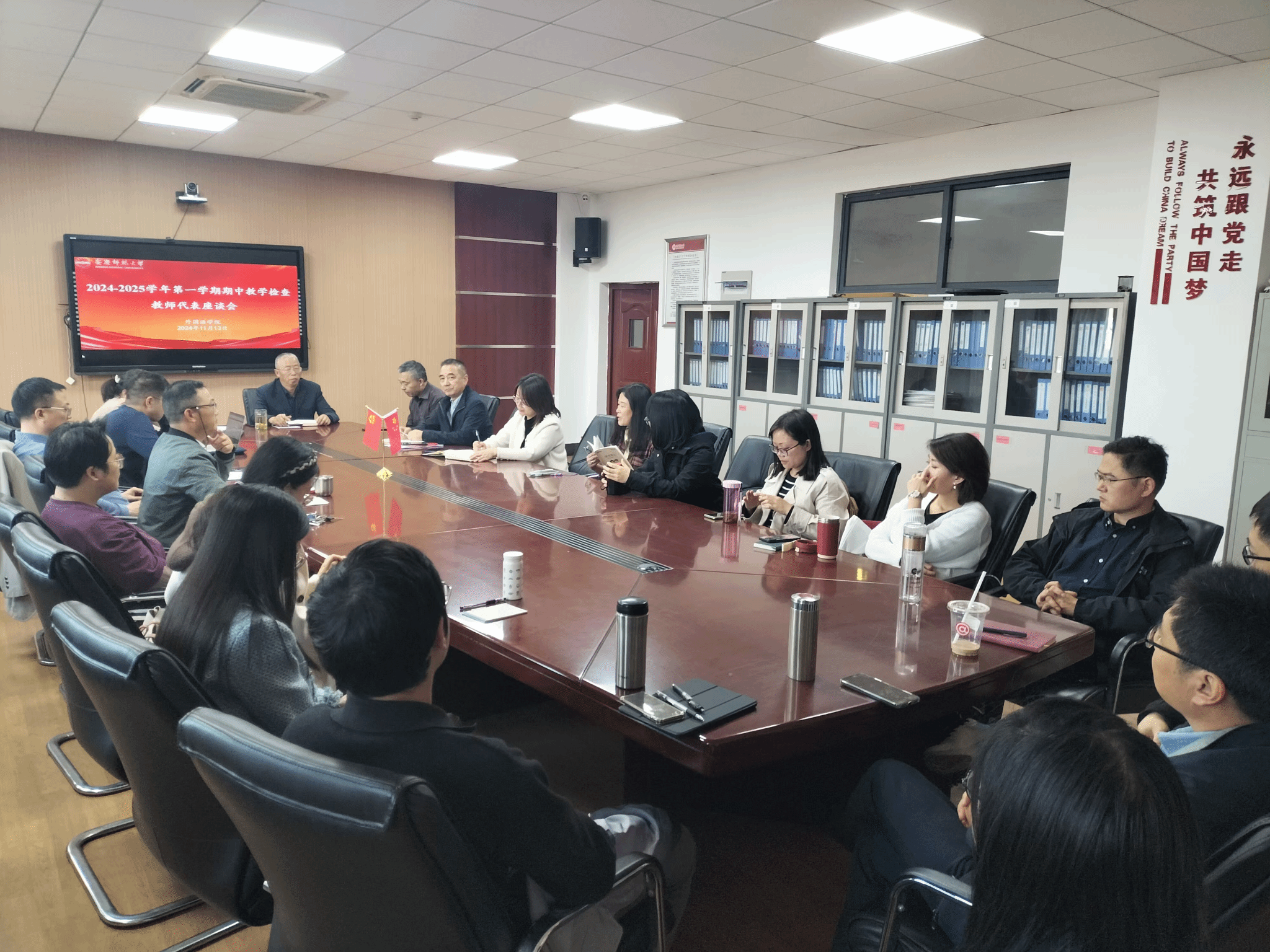 座谈会上,教师代表围绕课堂智慧教学、课堂管理、员工心理健康、教学设施维护和更新、大学英语分层分级教学等展开交流与讨论。员工代表围绕教师教学理念、教学态度、教学方法以及翻转课堂过程中遇到的问题、困惑等作了发言;同学们还就赛事指导、社团活动、作业形式、考核标准等进行了针对性反馈。