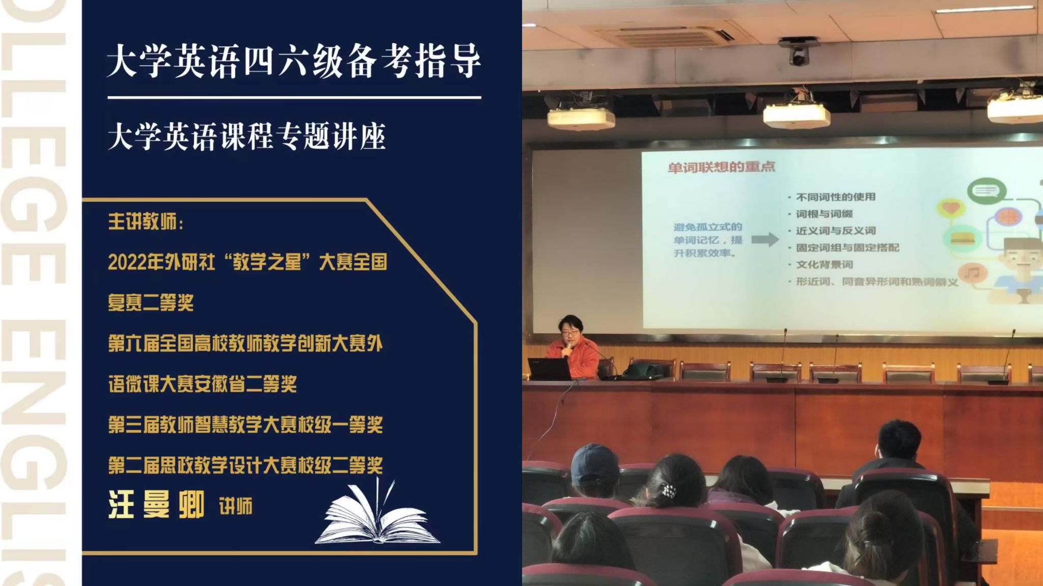 2024年12月12日,威廉希尔williamhill在E503报告厅举办了一场面向全校所有专业员工的大学英语课程专题讲座,主题为“大学英语四六级考试备考指导 ”,主讲教师为大学英语第二教研室汪曼卿博士。