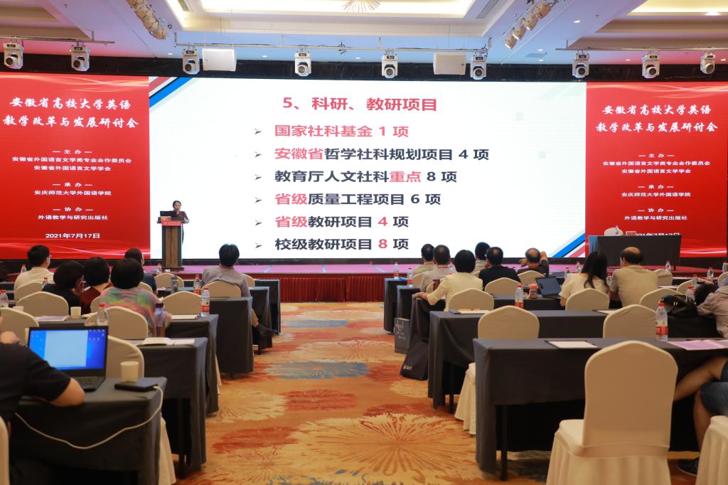 7月17日,安徽省高校大学英语教学改革与发展研讨会在公司隆重召开。威廉希尔williamhill大学英语教研室主任张文教授在会上作了题为“威廉希尔williamhill大学英语教学改革与实践”的主题发言。张文主要从约课平台、智慧教学、课程思政和教师发展四个方面阐述近年来公司大学英语教学改革的主要创新举措,如通过自主学习中心约课平台提供视听说课程和跨文化交际拓展课程,提升员工自主学习能力;通过雨课堂和学习通等智慧教学手段积极开展线上线下混合式教学;通过课程思政教学大赛和编写省级规划教材推进大学英语课程思政建设;通过支持大学英语教师国内外进修访学,定期安排骨干教师参加全国教学科研会议推进教师队伍建设。