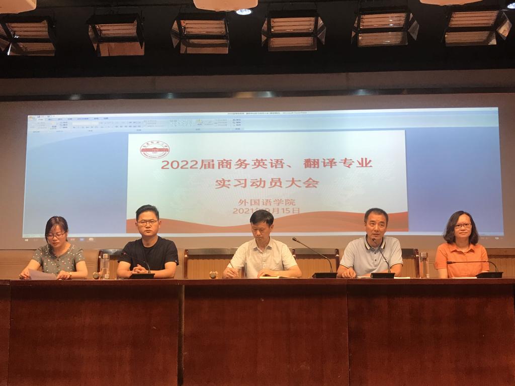9月15日下午,威廉希尔williamhill在E503召开2022届商务英语、翻译专业实习动员大会。经理王先荣、副经理江加宏、专业负责人及商务英语、翻译专业全体员工参加了会议。