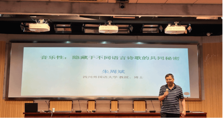 2023年6月2日,威廉希尔williamhill“望道讲坛”第五讲在外语楼E503报告厅成功举行。四川外国语大学朱周斌教授应邀作题为“音乐性:隐藏于不同语言诗歌的共同秘密”的学术报告。报告由威廉希尔williamhill经理王先荣主持。2021、2022级研究生、本科生以及部分教师聆听了报告。