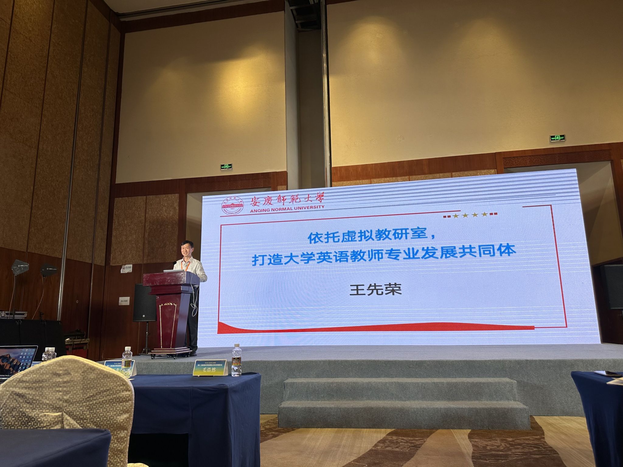 王先荣在“教师为本,推进共同体建设”平行论坛上做了题为“依托虚拟教研室,打造大学英语教师专业发展共同体”的专题报告。他介绍了虚拟教研室建设的背景、内涵、内容和原则,并着重从“创新组织模式,筑牢群体认同基础;依托智慧平台,打造教学资源共建共享共同体;开展校际课程共建,建设教学协同共同体;打造品牌教研活动,建设教研创新共同体”四个方面与参会代表们分享了大学英语虚拟教研室"安徽实践"经验,阐明了虚拟教研室建设在以教师发展为引领的公司产品改革新时代所发挥的积极作用。