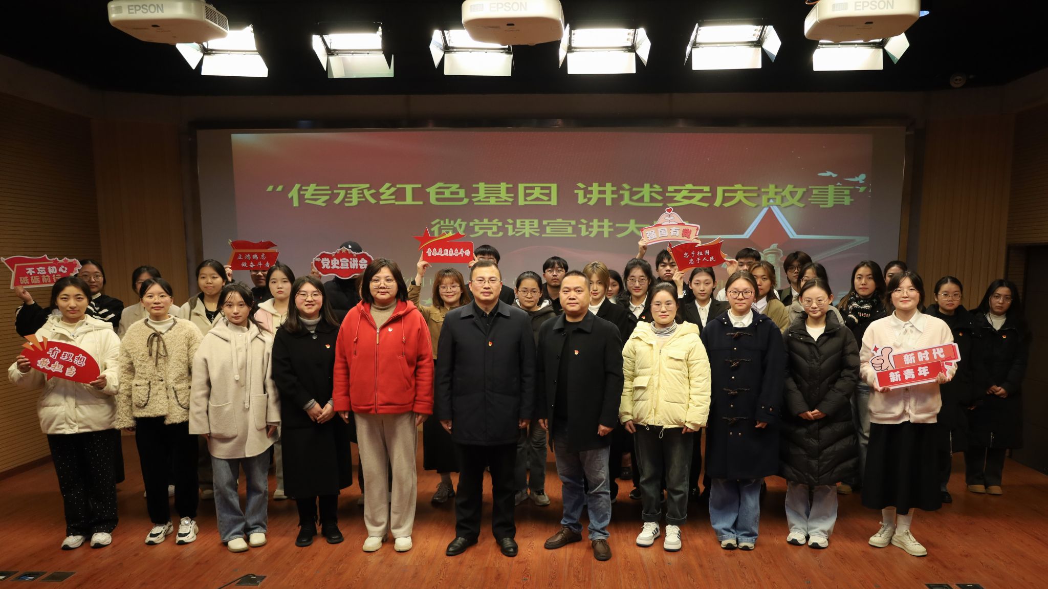 12月5日,威廉希尔williamhill英语系员工第一党支部在E503教室举办“传承红色基因 讲述安庆故事”微党课宣讲活动,公司党委常委、组织部常务副部长、党校常务副董事长计裕人作为联系该员工支部的党员干部参加并指导支部活动。公司党委书记徐华胜、党委副书记何媛君出席本次活动,支部全体党员、公司第70期入党积极分子等100余人现场聆听学习。