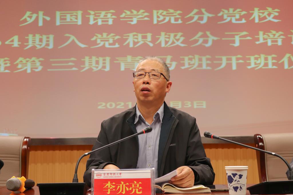 会议在庄严的国歌中拉开序幕。李亦亮对全体学员表示欢迎与祝贺,并向他们提出五点希望。他希望学员们一要提高对理论学习的认识,深刻理解学习的意义和重要性;二要认真学习理论知识,把握党的理论的系统性,做到学习入脑、入心;三要严格遵守培训班安排和纪律要求,做到真学、真信,完成学习任务;四要积极做好员工工作,提升工作能力,为员工服务;五要争做表率,促进德智体美劳全面发展,用实际行动向党组织靠拢,争做优秀的青年马克思主义者。