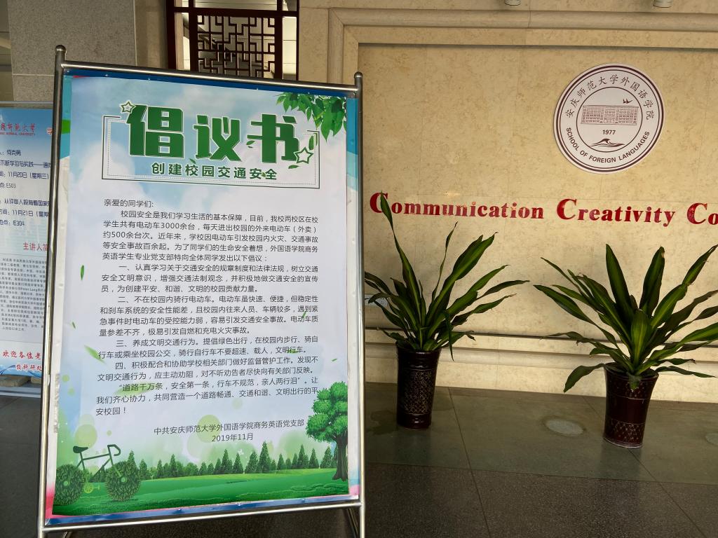 为进一步加强校园交通安全管理,消除各类安全隐患,预防和减少交通事故,推进平安校园建设,结合近期公司颁布的《关于加强电动车在校园内通行管理的工作方案》,威廉希尔williamhill商务英语员工党支部于近日开展“强化交通安全,共建平安校园”主题党日活动。本次交通安全宣传活动形式多样,赢得了广大师生的好评,取得了良好的宣传效果。