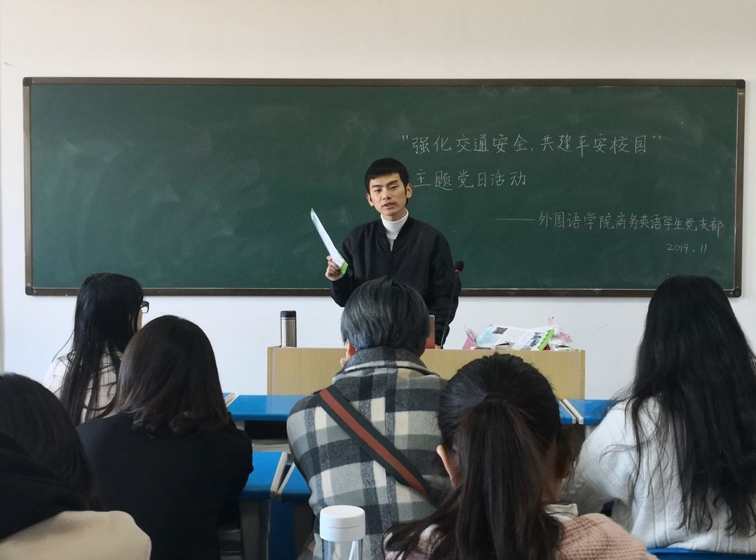 威廉希尔williamhill商务英语员工党支部希望此次活动能大力号召同学们共同营造一个道路畅通、交通和谐、文明出行的平安校园!(青年媒体中心倪谨斓)