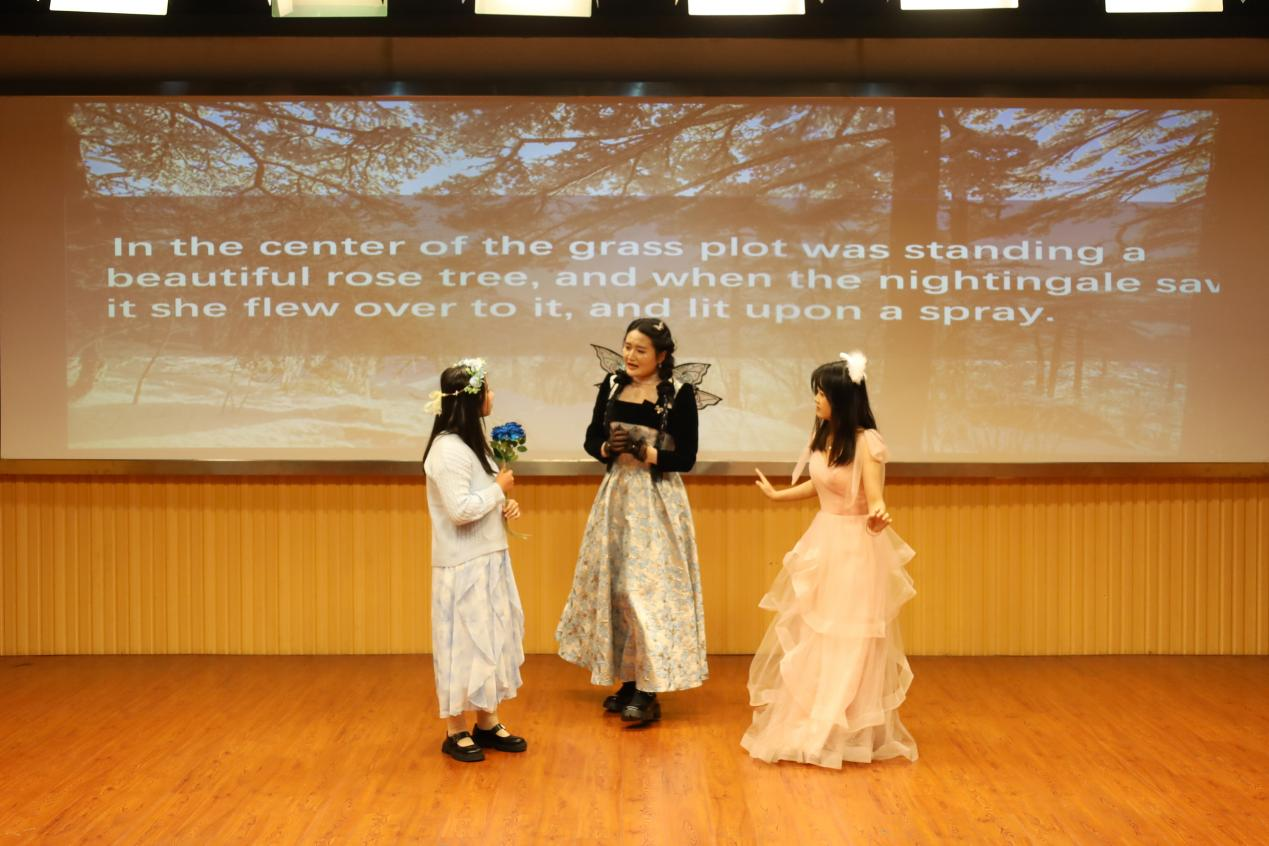 精彩纷呈的话剧节目轮番上演。法语专业2023级的《灰姑娘》生动再现了灰姑娘丢失水晶鞋的经典桥段;商务英语专业2023(2)班的《Who killed Sunday?》通过将星期的拟人化,演绎了一场关于“拖延”的“内心戏”;演艺团的《A Chinese Odyssey》凭借趣味横生的台词和活灵活现的表演重新演绎了牛魔王阻拦至尊宝娶紫霞的传奇故事……