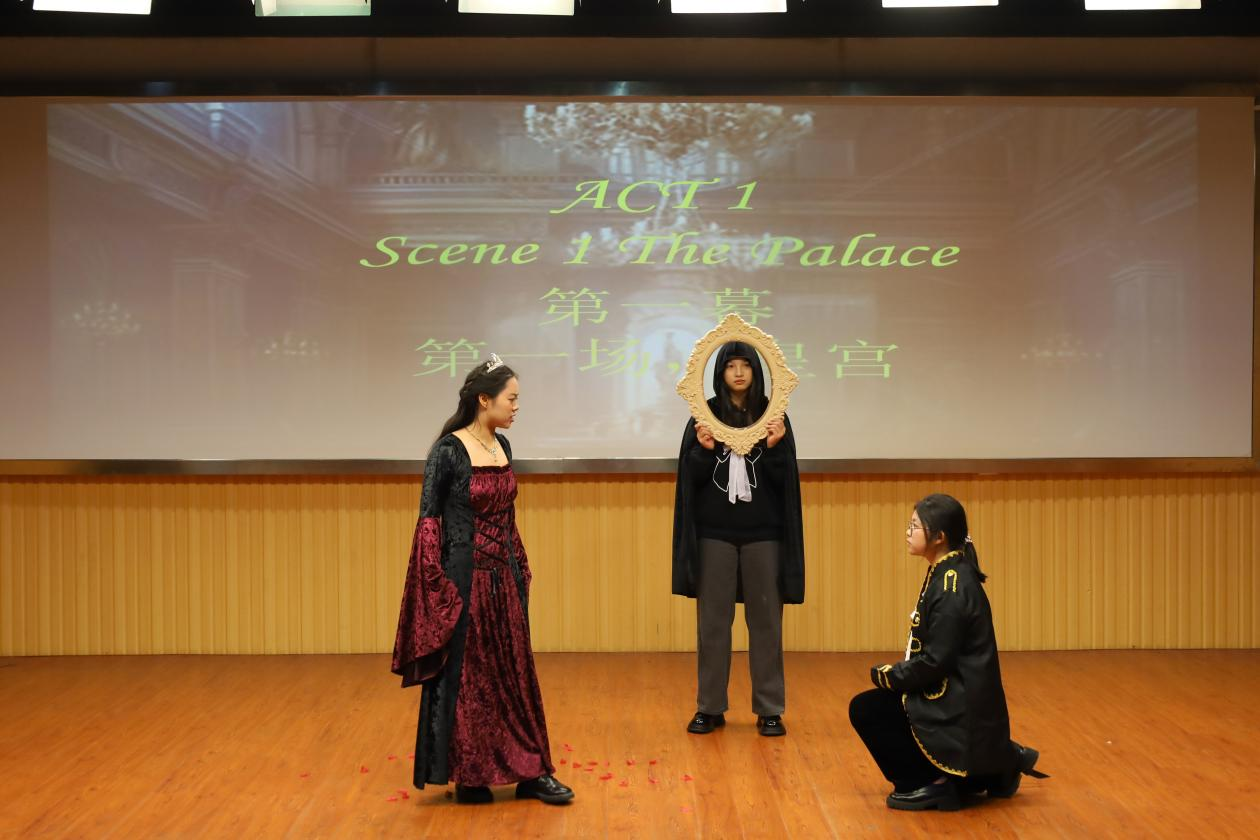 据悉,经初赛选拔后共有九个剧目进入决赛。经过评委打分,最终外国语言文学类专业2024(6)班的《黑雪公主》荣获一等奖,演艺团的《A Chinese Odyssey》、外国语言文学类专业2024(9)班的《真理之光照耀中国》和商务英语专业2023(2)班的《Who killed Sunday?》荣获二等奖,其余班级选送剧目获得三等奖。