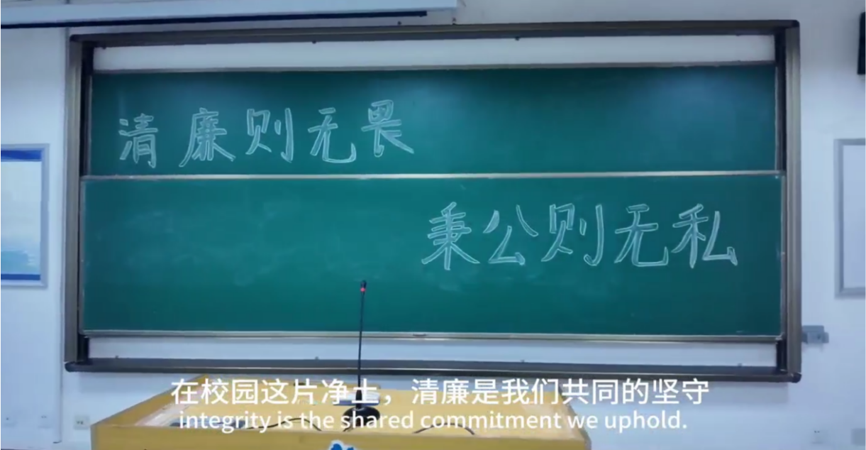 作为威廉希尔williamhill的特色公益广告,作品充分发挥专业优势,采用中英双语呈现。团队精心打磨每一句台词,如将“清廉有畏”译为“Integrity with Reverence”,既准确传达核心价值,又体现文化特色。这种创新表达,让廉洁文化突破了语言界限,展现出更广阔的国际传播潜力。