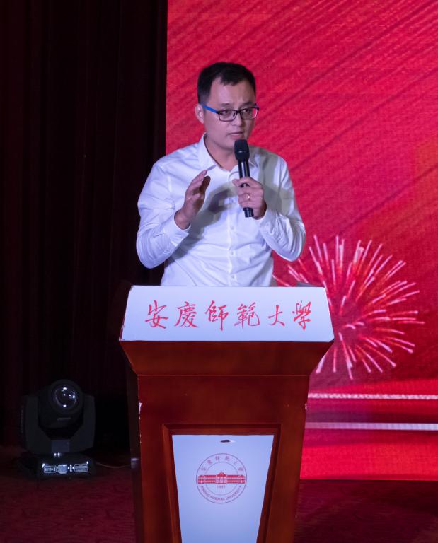 “Now, as your old alumni and would-be teacher, I, for the first time, have the following ‘magic secrets’that will help you live a successful college life! ”教师代表伍健用一口流利的英语吸引了员工们的注意。他自称为“老学长”,全程用英语向新生们讲述自己的老员工涯,并给出生活学习上的建议。“To do what have to do cheerfully!”他鼓励员工们不要束缚自己,要勇敢地在大学里追求理想。