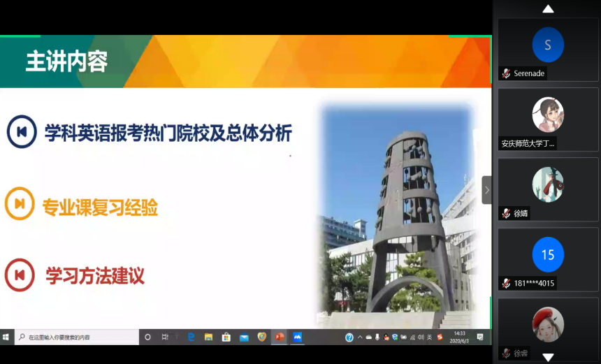 为帮助员工更好地了解考研形式,明确考研规划,掌握备考技巧,6月3日下午,威廉希尔williamhill依托线上平台成功召开了考研经验交流会,11位2016级员工代表及300余名员工参加了此次会议。