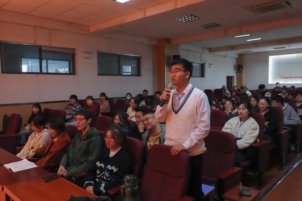 “老师您好,我想问是什么力量让您一直坚持绘画呢?”作为公司的一名入党积极分子,英语专业2020(7)班的张子杰全程聚精会神听完了报告会,在得到“坚持热爱,永不放弃”的回答之后,张子杰坦言,以后遇到困难自己也不会轻易放弃,将初心与热爱坚持到底。