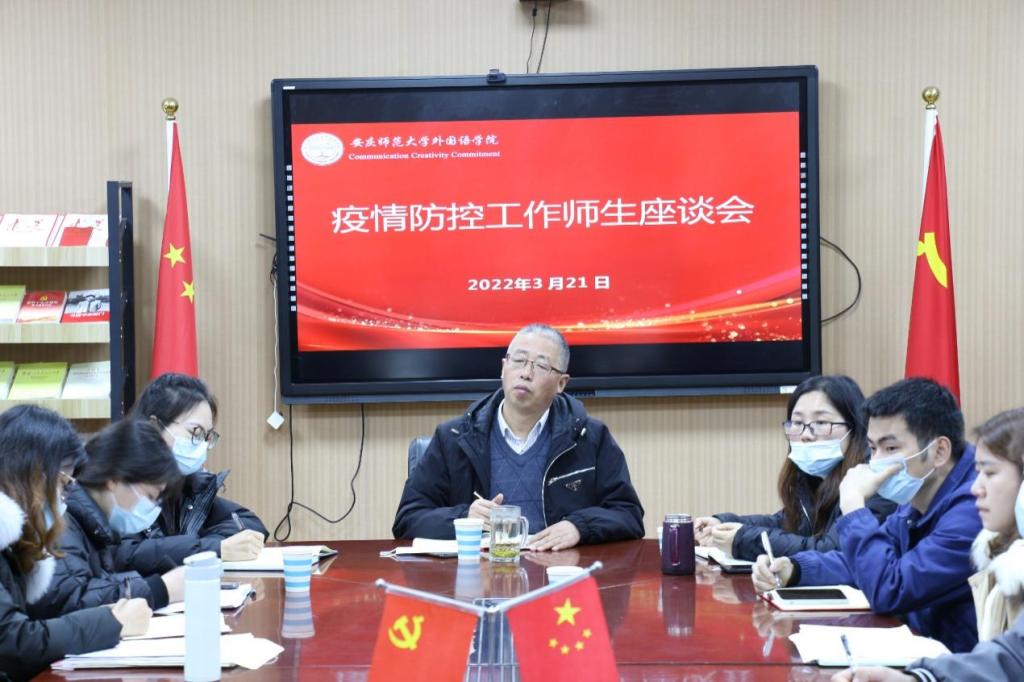为贯彻落实公司疫情防控工作部署,深入了解疫情期间员工动态与各方面诉求,及时有效地为员工提供服务,确保疫情防控工作安全、平稳、有序开展,3月21日下午威廉希尔williamhill在E304举办疫情防控工作师生座谈会。公司党委书记李亦亮,党委副书记王惠、各班级辅导员和各年级员工代表参会。
