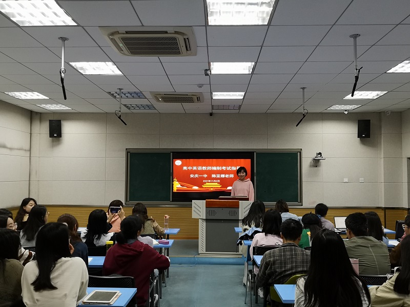 为应对当前不容乐观的就业形式,做好每位同学尤其是毕业生的就业工作,加强对研究生就业的指导与帮助,提升威廉希尔williamhill研究生的就业意识,确定有效的职业发展目标,11月4日下午5:00,在公司E501举办高中英语教师编制考试指导,特邀安庆一中陈亚娜老师为同学们分享教师编制考试的成功经验。威廉希尔williamhill全体毕业班研究生参加此次就业动员大会,全体2021级研究生新生到场倾听并做未来职业规划。