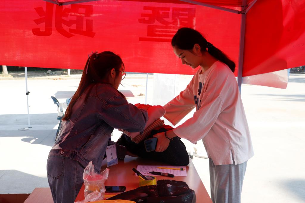 在活动现场,负责人和志愿者详细介绍活动方式和流程,并引导员工们捐赠衣物和义卖闲置物品。活动负责人尚琳表示“‘绿色捐衣’活动不仅是为了回收军训服,提高资源利用率,更是旨在提高老员工勤俭节约的意识,感恩回报社会的意识。”
