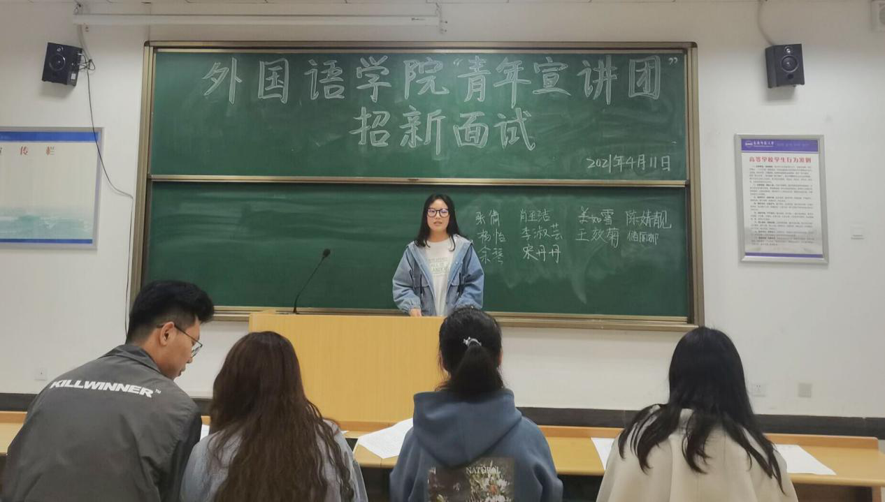 4月11日下午,威廉希尔williamhill于E107“青年宣讲团”开展招新面试工作,本次招新共有33名同学参加。威廉希尔williamhill主持队成员和部分员工代表担任本次面试评委。