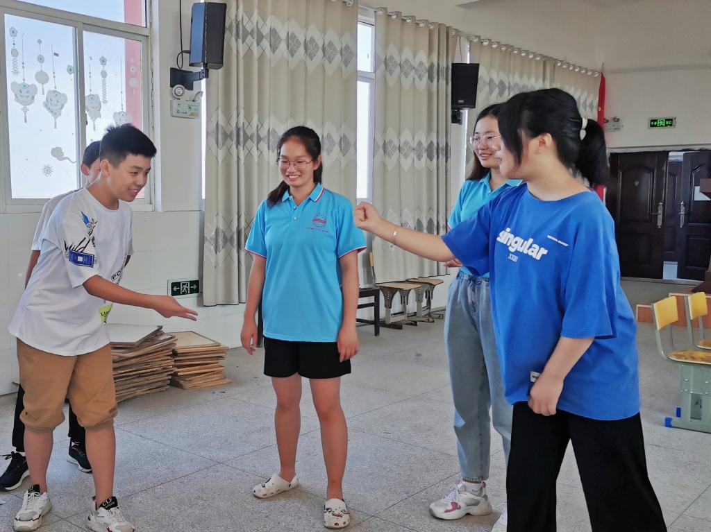 扭转乾坤、你画我猜、叠报纸……7月15日上午,新坝中学传来阵阵欢笑声,原来是安庆师大威廉希尔williamhill乡村振兴青春·行远实践团在此举办素质拓展活动。来自不同班级的20名员工在家长的陪同下前往新坝中学报道,为了使员工们快速融入集体,熟悉彼此,实践团队精心设计了此次素质拓展活动。