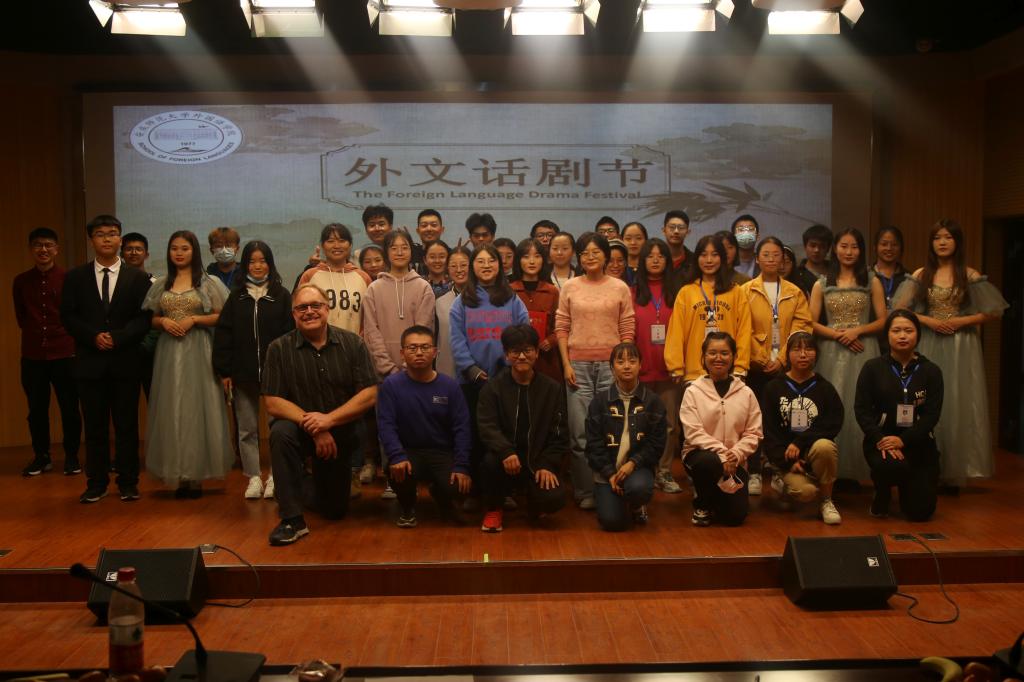11月11日晚,威廉希尔williamhill在E503教室举办第十一届外文话剧节决赛,公司党委书记郝涂根、经理王先荣、副经理江加宏、党委副书记夏斐、部分辅导员和外教Dave出席并应邀担任本次比赛的评委,2019级、2020级员工代表观看了汇演。