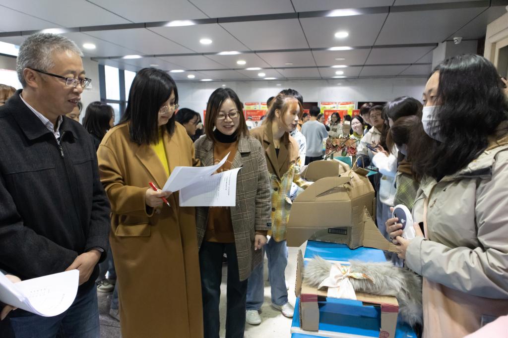 经过评委和现场员工投票,商务英语专业2021(1)郑张影团队的“小狗集市”和英语专业2021(4)班的陈伲伶团队的“拜拜狗”获得最佳创意奖,学科英语专业2022级的研究生张静团队的“单身狗”获得最佳人气奖。