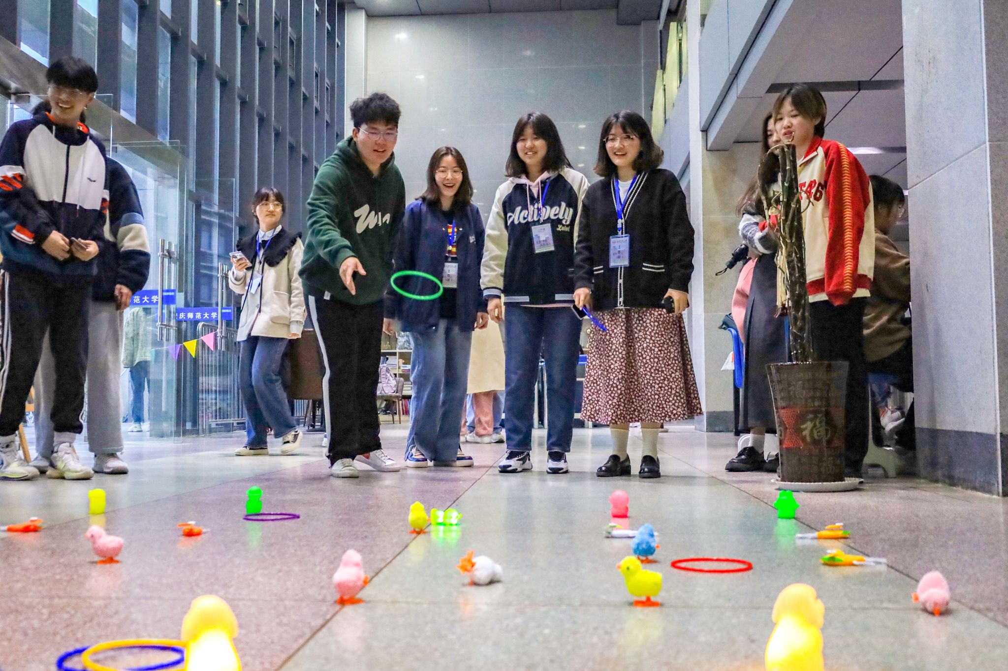 “很惊喜我能一下套中两个玩具,以前玩游戏都是空手而归的。”环境科学与工程类专业2022(3)班的张美芳“幸运buff”加满,成功套中玩偶和手持泡泡机。她表示,从高中升入大学以来,她感觉自己的交友范围仅限于寝室,觉得自己不适应老员工活。“看到套中玩偶会有成就感,觉得自己也释放了一些心理压力。”