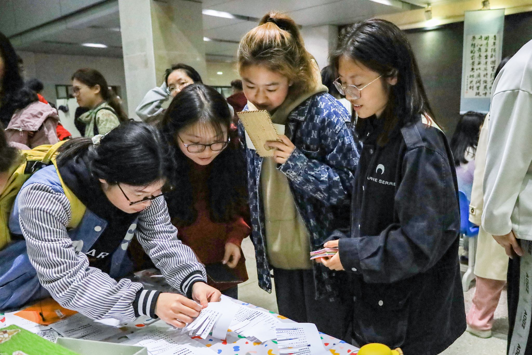 “众生庸俗,对未来敬祝,青苔吻上古木,拨开云雾,粉碎了人间行走的孤独。”作为解忧杂货铺摊位负责人,英语(师范)专业2021(3)班的赵雨欣化身为“一日诗人”,率先体验摊位上的拼接诗环节。她表示,每个人都是孤独的个体,但也是独特的个体,不用为现在担忧,只管向未来进发就好。“很喜欢今天的活动,能与大家一起在音乐中做游戏、放松心情。”