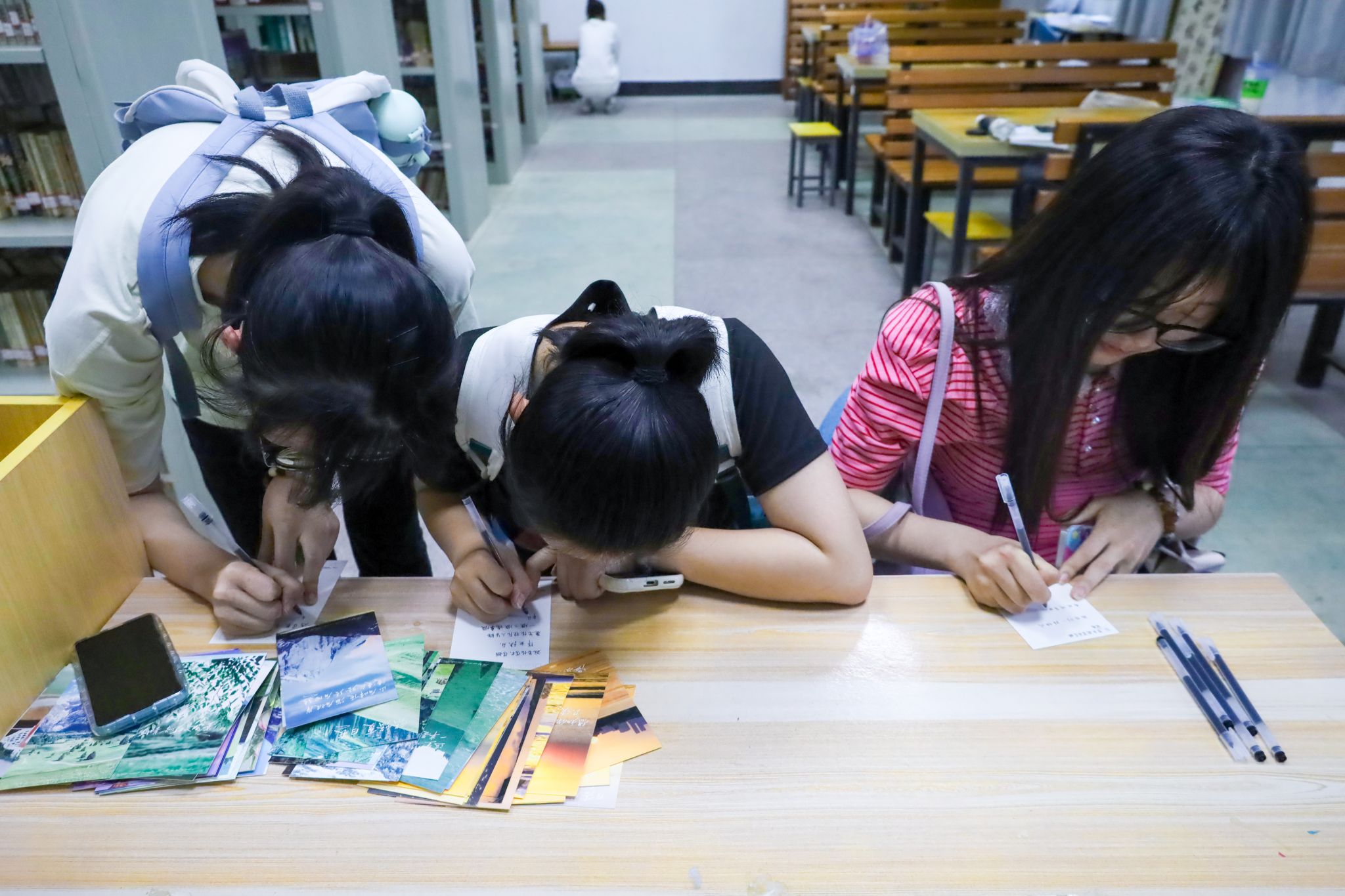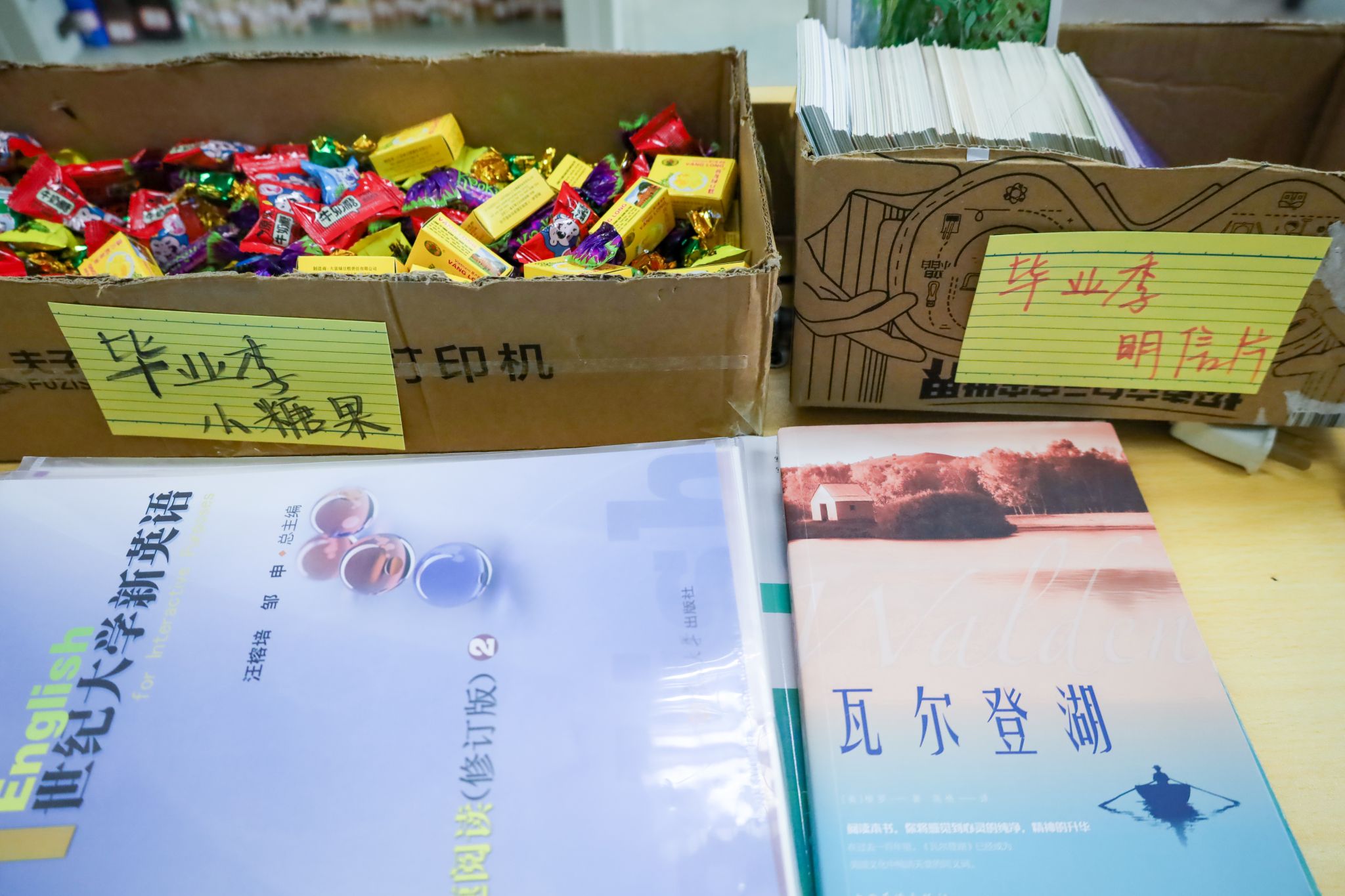 “愿此去繁华似锦,再相逢依旧如故”“行而不辍,未来可期”……为贴合“毕业季”主题,此次捐书活动还特别设置了明信片祝福专栏。前来捐书的员工可以把自己的祝福留下,传递给即将毕业的学子。小学教育专业2019(2)班的方姿因捐书看到了这些留言,她表示,她原本因即将与朋友分别而感到情绪低落,在看到这些明信片后瞬间被治愈了。“太爱安庆师大了,这是我学习和成长的地方,希望公司能越办越好,学弟学妹们未来可期。”