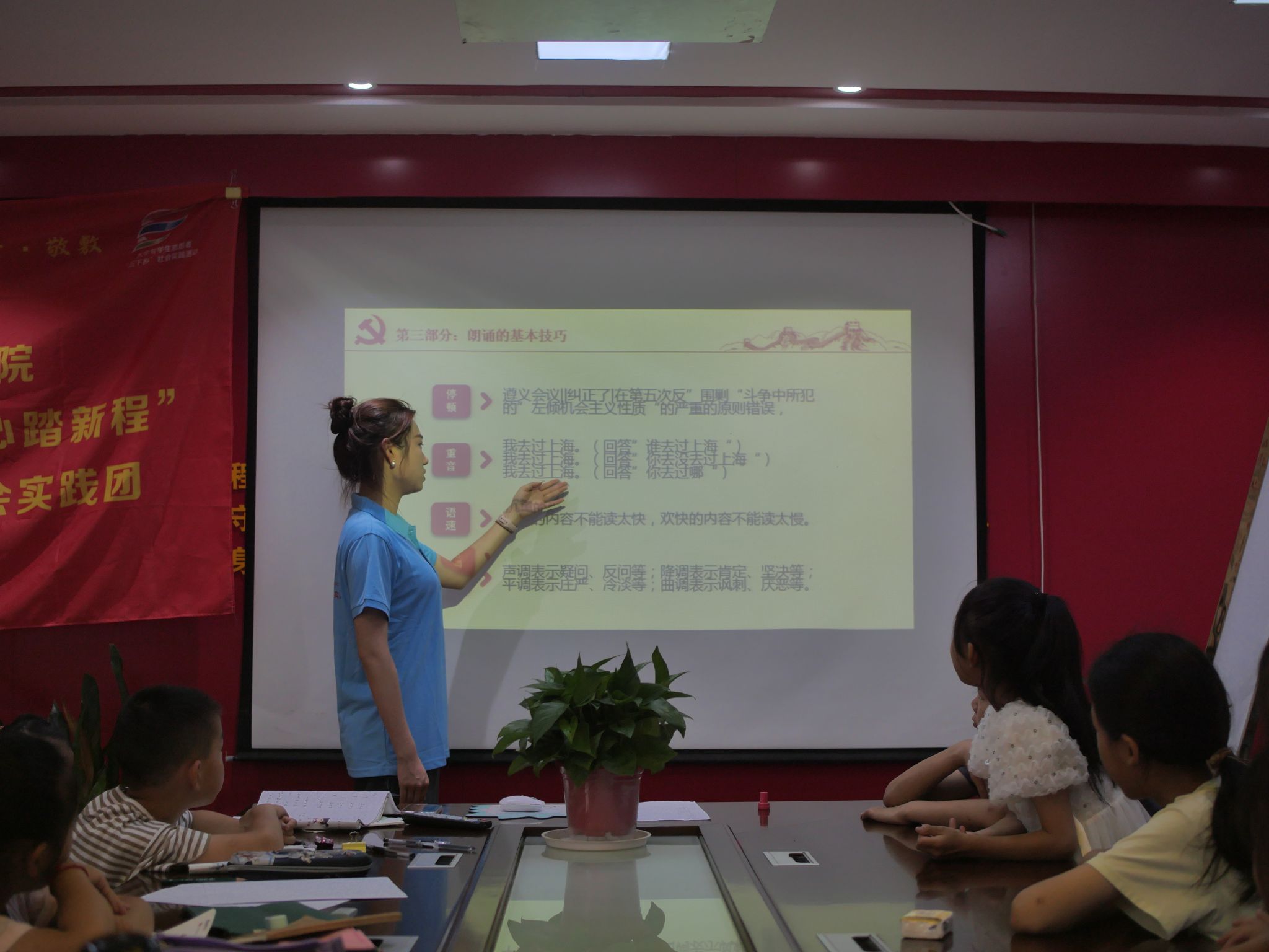 实践团队长、翻译专业2021(2)班的李文博表示,他们准备了拼红色记忆、红色朗诵等课程,以孩子们学过的爱国主题课文为切入点,在温习知识的同时,引导孩子们积极学习党的理论知识。