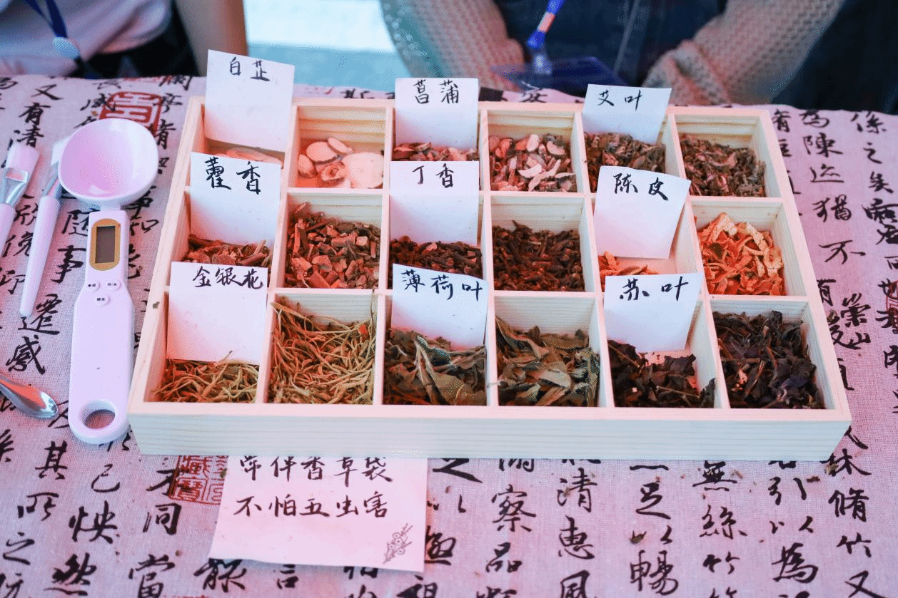 取丁香15克、薄荷20克、艾叶15克、藿香10克放入石臼中捣碎,再将粉末装入香包中,一个带有户外驱蚊效果的草药香包便出现在制作学子手中。“我们购买中草药时特意选择了未被加工成粉末的原材料,希望为员工带来更直观的参与感。”范彦菲介绍。“亲手研磨体验感十足,自己研磨出的粉末也更天然。”了解到驱蚊香包制作后,外国语言文学类专业2023(7)班的陶亚楠直言,草药香包既能驱蚊还很美观,她玩到的同时也“赚”到了。